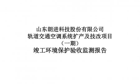 山东朗进科技股份有限公司轨道交通空调系统扩产及技改项目(一期)竣工环境保护验收公示